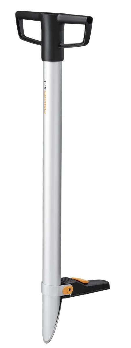 Il piantabulbi Fiskars Xact consente di piantare bulbi e piantine di piccoli alberi senza doversi chinare o inginocchiare. Scava una buca, inserisci il bulbo e ricoprilo di terra, il tutto in pochi semplici passaggi. Il manico in alluminio, resistente e leggero, è dotato di una lama e di un pedale per scavare facilmente il foro. Il meccanismo di bloccaggio sul pedale mantiene la lama aperta e permette al bulbo inserito nel piantabulbi di cadere esattamente nel foro scavato. Estrarre il piantacipolle dal terreno, coprire il bulbo con terra e compattare leggermente il terreno. Per piantare bulbi e piantine di piccoli alberi fino a 50 mm di diametro. Profondità di piantagione fino a 150 mm