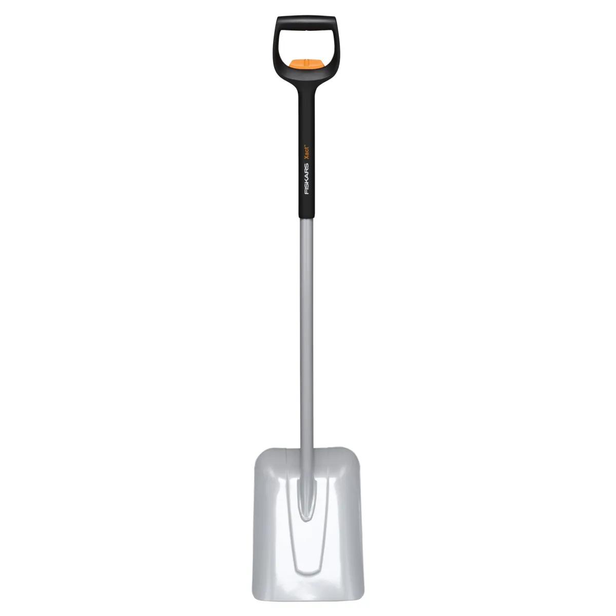 La pala telescopica Xact™ ha una lunghezza regolabile per un adattamento perfetto. La sua testa in acciaio al boro è saldamente fissata a un'asta telescopica intelligente in composito e acciaio, che ha una lunghezza compresa tra 120,8 cm e 140 cm. L'ampia pala con angolo ergonomico garantisce un facile spostamento di materiali sfusi come terra, sabbia, ghiaia e altro.