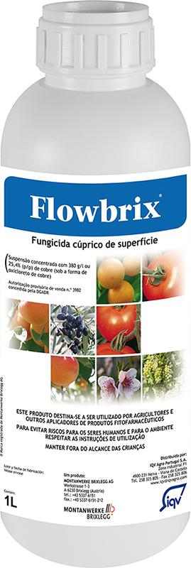 Flowbrix è un fungicida fogliare con effetto protettivo. Agisce per contatto contro le malattie fungine e batteriche. Flowbrix forma una sottile pellicola sulla superficie delle piante trattate, che viene assorbita dalle ife e dalle spore del fungo. Il prodotto interferisce con il sistema enzimatico degli organismi patogeni. Flowbrix ha anche un'efficacia secondaria su altre malattie della vite: ticchiolatura rossa, macchia nera e marciume nero della vite.
